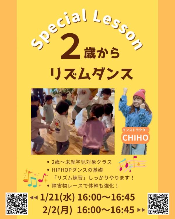 スタッフブログblog 2歳からできる!リズムダンス スタッフブログ掲載日:2026年01月14日 \\2日間の限定開催// ︎ 【レッスンの流れ(45分)】 挨拶 ウォーミングアップ ストレッチ リズムトレーニング 動物レース 振り付け覚える 障害物レース 振付けダンス こちらのレッスン動画もご覧ください 【日程】 ①2026年1月21日(水)16:00 予約はこちら ②2026年2月2日(月)16:00 予約はこちら Q.発育ダンスと何がちがう? A.発育ダンスは脳の活性化が目的ですが リズムダンスの目的は 【ダンスの基礎スキルを取得する】です! よりダンスらしく♪ ご予約お待ちしております♪ 関連ブログ ●最年少は2歳発育ダンスクラス ●ママ★DANCEはじめない? ●2歳からダンス×脳育!【発育ダンス】 ●3歳からできる習い事 共有:クリックして Twitter で共有 (新しいウィンドウで開きます)Facebook で共有するにはクリックしてください (新しいウィンドウで開きます) 関連 « 前の記事 │記事一覧│ 次の記事 » Orrganic gym336-0017埼玉県さいたま市南区南浦和 2-33-13 A.M.U 5F https://organic-gym.com/cms/wp-content/themes/base/images/maker_icon.png